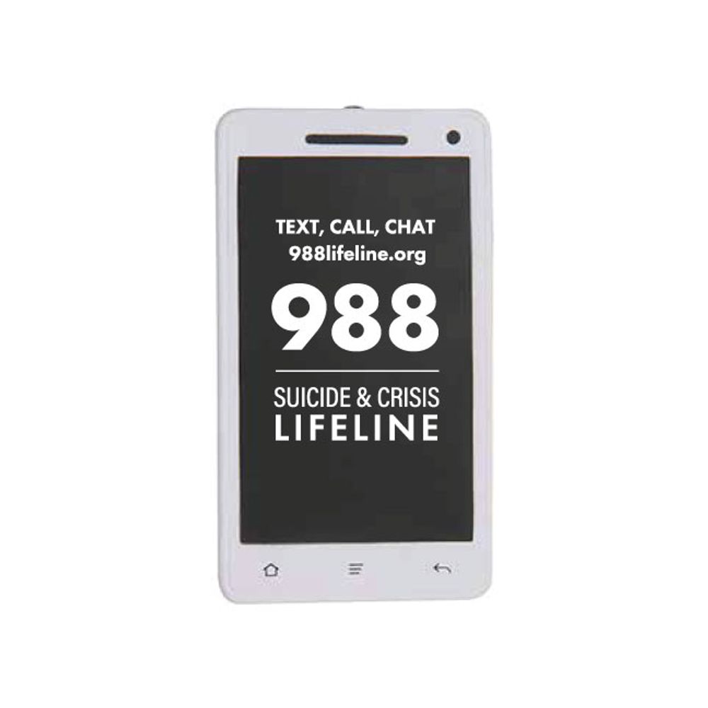 This cell phone shaped stress reliever measures 4.5 inches by 2.5 inches and is made from soft squeezable material, providing a simple way to reduce tension while prominently displaying the 988 Suicide & Crisis Lifeline imprint.