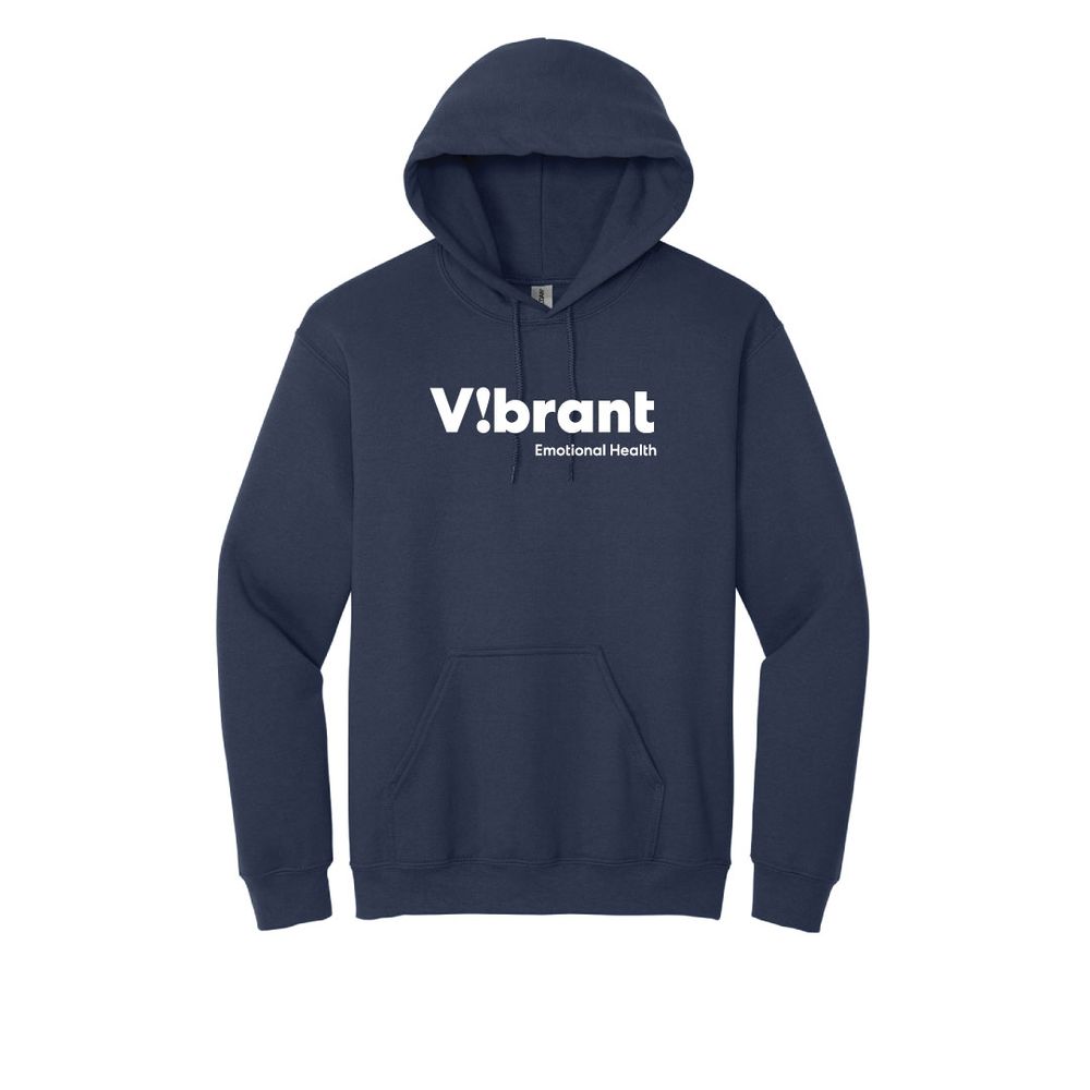Shown in navy with the Vibrant Emotional Health logo imprinted on the front chest, this hoodie is the perfect mix of comfort, function, and brand pride.