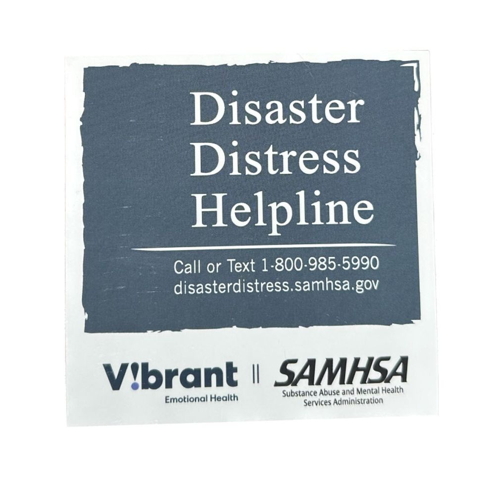 • 4" x 4" Magnet with Disaster Distress Helpline artwork.