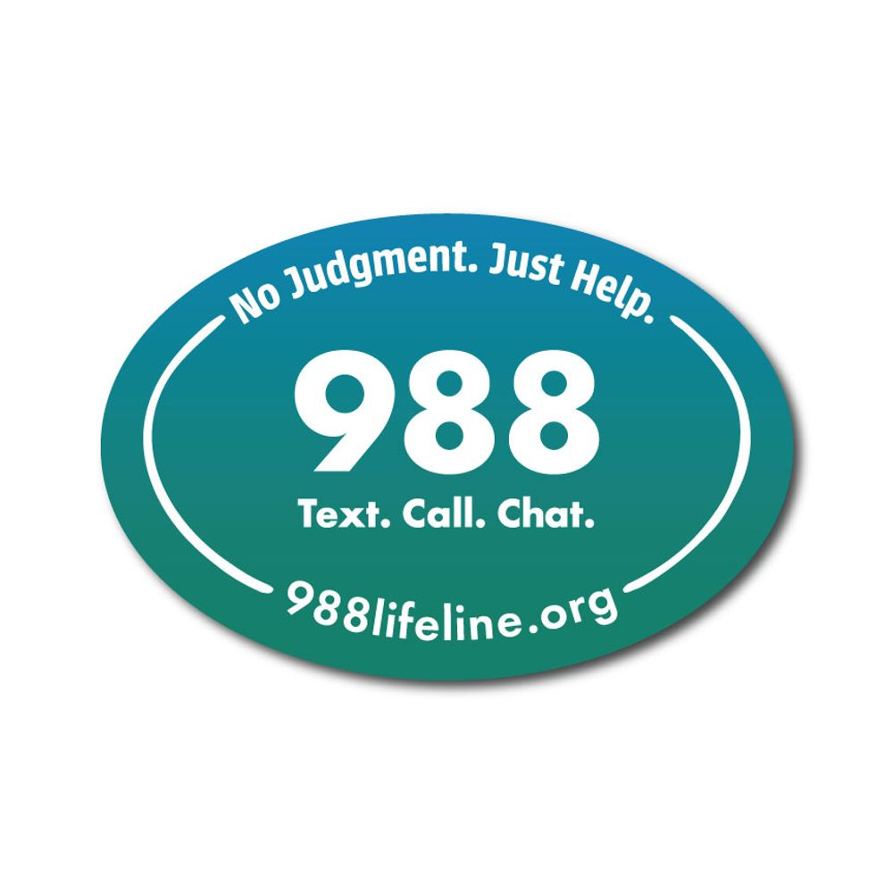 Promote awareness and provide vital support with this 988 Suicide & Crisis Lifeline Oval Car Magnet.
