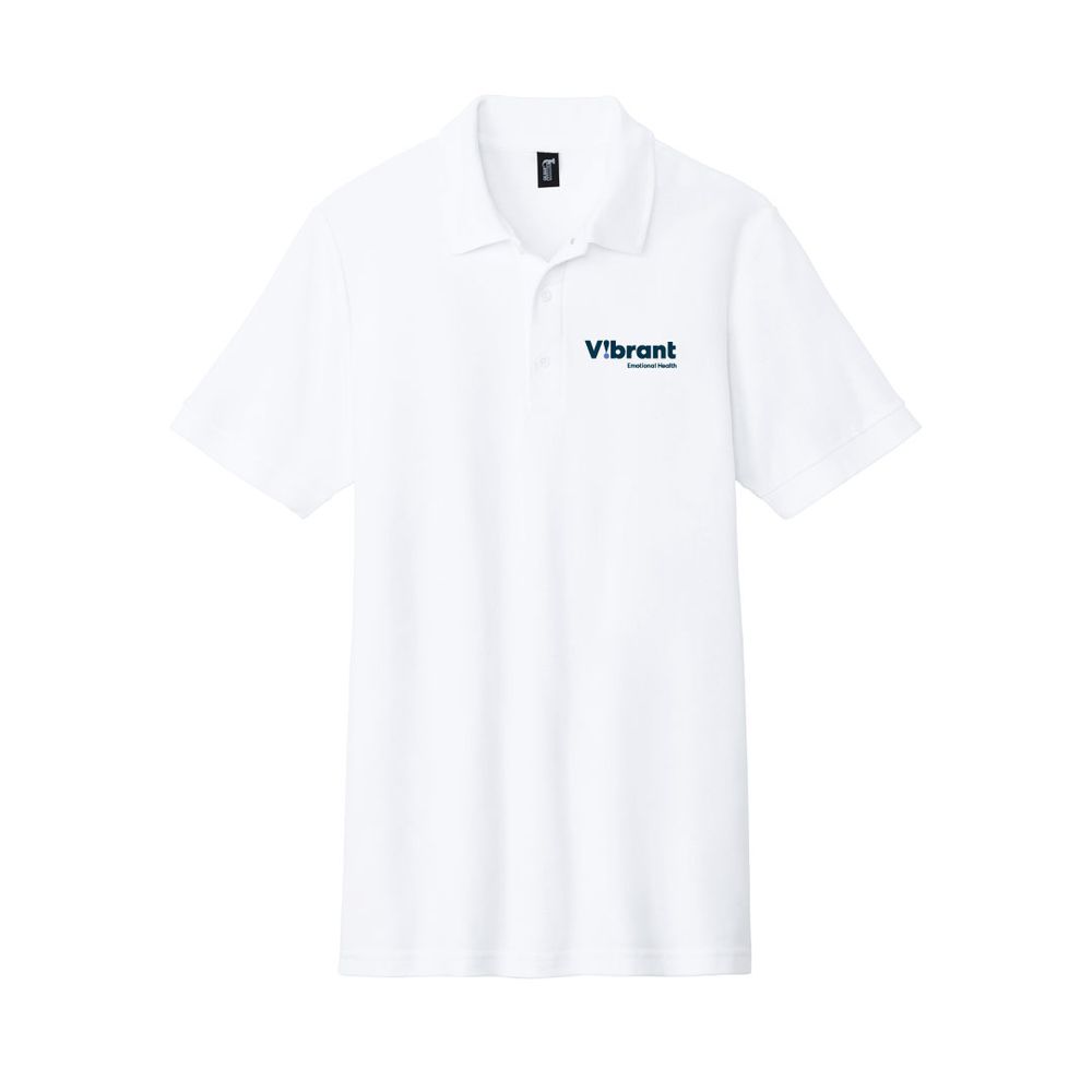 Shown in white with the Vibrant Emotional Health logo embroidered on the front left chest, it’s a professional yet comfortable choice for work, events, or casual wear.